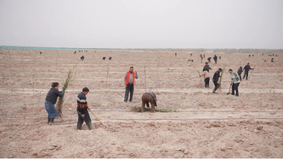 木什乡博斯坦村党支部书记马木提·图尔提说:“我们这次种下的沙枣树耐旱、易活,成林后不仅能有效减少风沙对农田和居民区的侵袭,还能逐步改善土壤条件。这对我们农民来说,是实实在在的长期效益。”