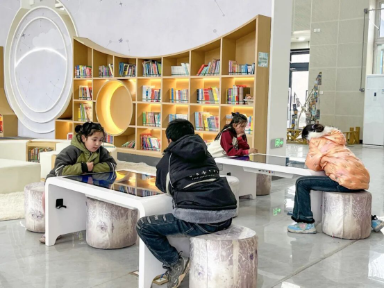 沉浸式阅读区内,更是一派安宁惬意的景象。少年读者们手捧书籍静静品读,神情专注认真,唯有书页轻翻的沙沙声。