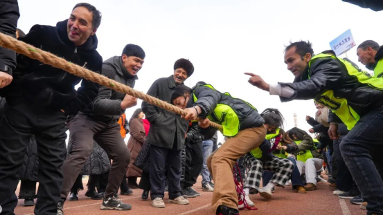 “今天我特意赶来观赛,为我们吾库萨克镇的选手加油,现场太热闹了!看着乡亲们在赛场上奋力拼搏,心里特别激动,处处都能感受到满满的活力。”吾库萨克镇群众马丽亚姆·努尔麦麦提激动地在拔河赛场边为选手们高呼加油。