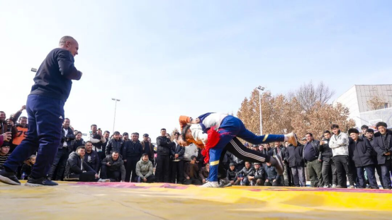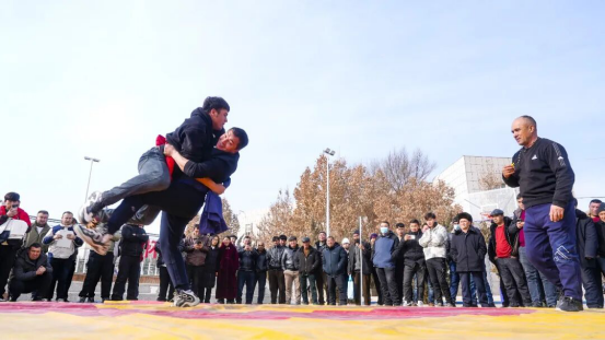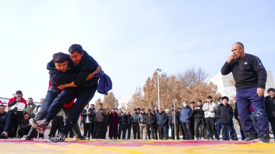 民族式摔跤激情对决现场。