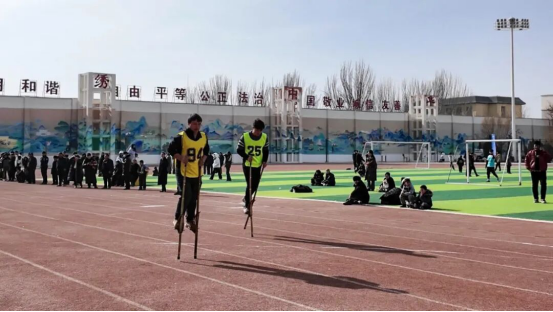 高脚竞速踏杆比拼现场。