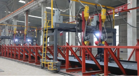 3月18日,在喀什广泰新型装配式建筑工程有限公司生产车间,激光切割机精准裁切、组立机高效运转、埋弧焊火花四溅,工人们分工协作,有条不紊地开展钢结构激光下料、组立、焊接、矫正、拼装等全流程工序,各条生产线满负荷运转。