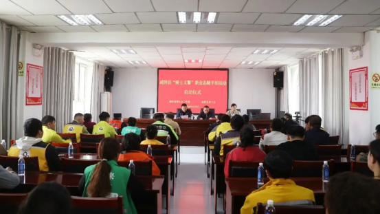 上图:疏附县“骑士义警”新业态随手拍活动启动仪式现场,活动由县委社会工作部联合县总工会等多部门共同举办。