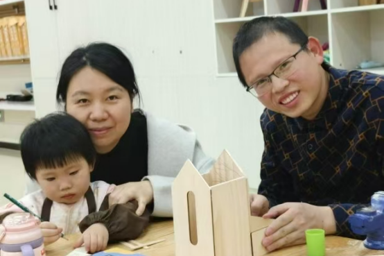 上图:覃昱钦一家三口参加外派干部手工DIY活动。资料图