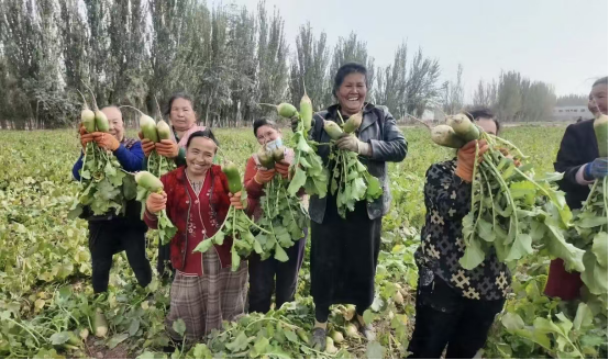 眼下,疏附县辽园镇的田野上一派热闹景象,1599亩萝卜迎着秋日暖阳迎来丰收,翠绿的菜叶铺满田垄,饱满的萝卜裹着新鲜泥土被采收装箱。这一片丰收景象,不仅让村集体经济“家底”更厚实,还让村民的腰包实实在在鼓了起来,真正实现了“产业丰收、集体增效、村民受益”的良好局面。