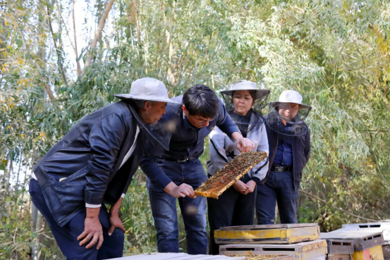 让村民“敢养蜂、会养蜂”是产业起步的关键。后盾单位投入7万元资金,购置种蜂、蜂箱与蜂药,支持成立疏附县石园镇甜蜜养蜂农民专业合作社。合作社采用“合作社+农户”模式,免费向村民发放种蜂;工作队还邀请养蜂专家进村,开展选种、育种、养殖全流程培训,现场解决技术难题,切实提升村民养殖水平。