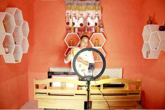 兴产业更要拓销路。工作队创新销售模式,搭建线上销售矩阵,组织合作社社员走进抖音直播间,以“纯手工过滤、无任何添加剂”为卖点热情推介,接地气的吆喝吸引大量网友下单。截至目前,合作社累计销售蜂蜜6吨,销售额达32万元,让“甜蜜事业”真正成为村民增收的“金钥匙”。