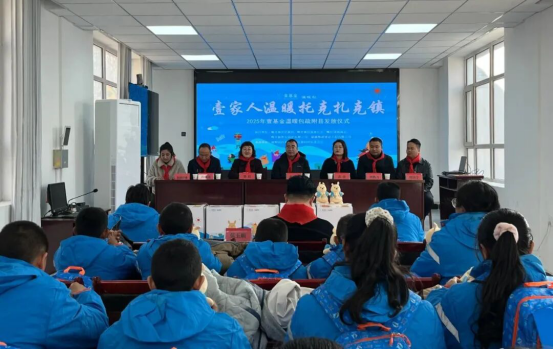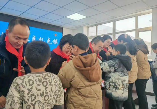 活动现场,工作人员为孩子们发放爱心“温暖包”,细心帮他们穿上保暖衣物,并鼓励大家勤奋学习、茁壮成长。学生代表为爱心人士佩戴红领巾,表达真挚谢意。同时,主办方为捐赠企业颁发了“爱心捐赠商会”牌匾。