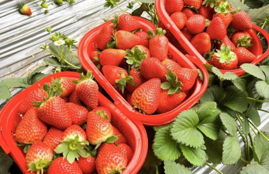 在草莓种植大棚内,奶油、巧克力、红颜、黑珍珠等多个品种分区栽种,翠绿藤蔓间,饱满的红果错落点缀,果香混合着泥土的清新扑面而来。大棚采用蜜蜂自然授粉、有机肥培育的绿色无公害种植方式,结出的草莓果大味甜、色泽鲜亮。手提果篮的游客们,或弯腰仔细挑选心仪的果实,或与娇艳草莓合影留念,欢声笑语此起彼伏,满是田园采摘的独特乐趣。