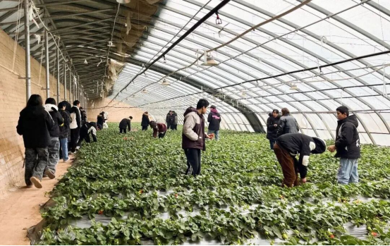 1月23日,室外寒意正浓,疏附县吾库萨克镇现代农业产业园的大棚内却春意盎然。草莓红透藤蔓,樱桃繁花满枝,游客们穿梭其间,沉浸式体验现代农业带来的“莓”好与“樱”趣。