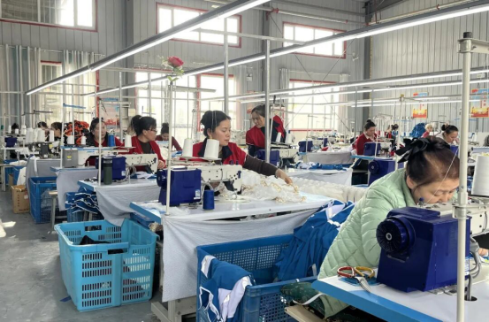 车间投产后,为村民打开了家门口就业的大门。“以前围着家里转,收入来源少。现在进了厂,有固定工资,日子越过越红火!”正在缝纫工位忙碌的辽园镇艾日克贝西村村民努尔比耶·亚库普笑着说。她通过企业免费技能培训掌握缝纫技术后进厂就业,如今已是车间缝纫骨干。每天步行十分钟就能上下班,这份家门口的工作让她实现了务工顾家两不误,既经济独立,还能兼顾家庭。