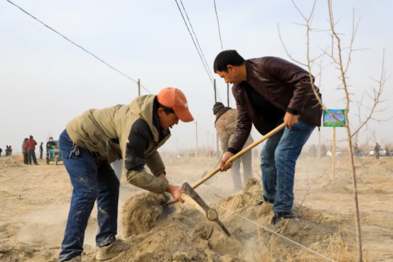 活动聚焦生态保护与产业发展相结合,集中打造350亩特色生态经济林,现场共计栽植沙棘树、沙枣苗、木瓜树2万余株,采用滴水灌溉模式科学保障苗木成活率。通过规模化、规范化的植树造林举措,进一步筑牢乡村生态安全屏障,为当地生态振兴注入新活力。