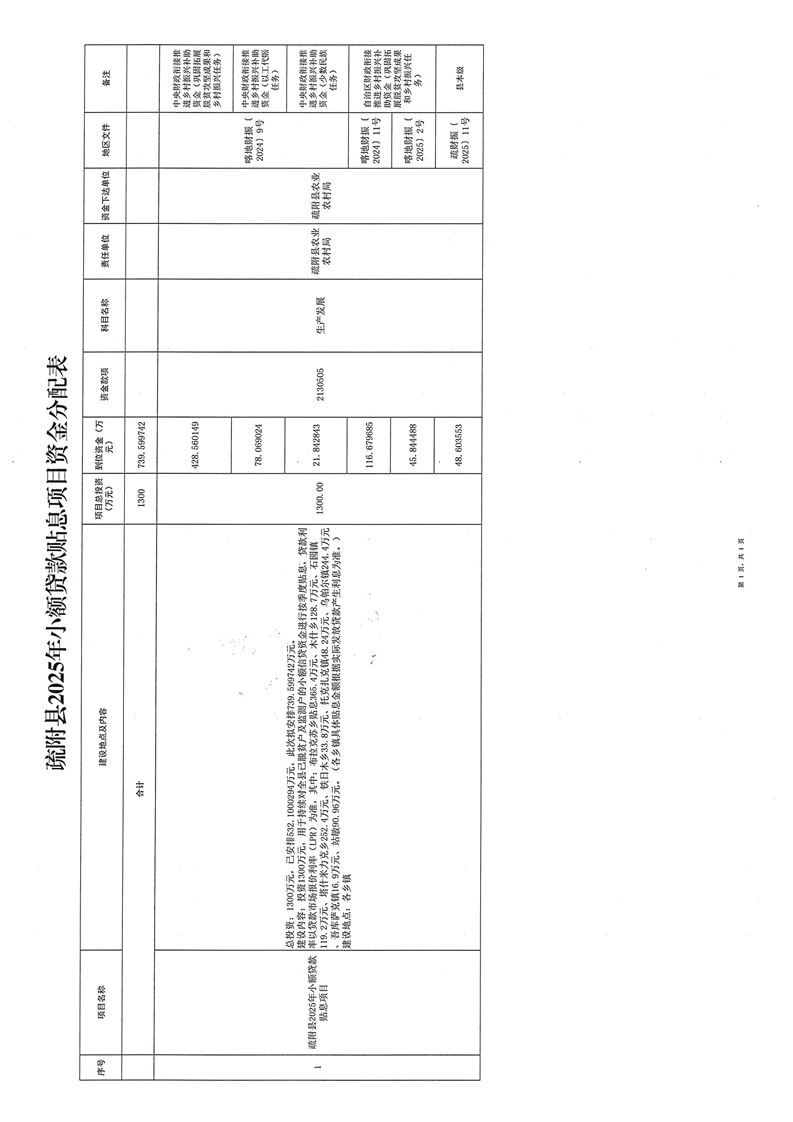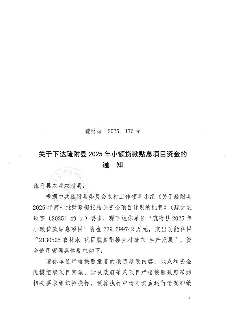 疏财振〔2025〕176号关于下达疏附县2025年小额贷款贴息项目资金的通知