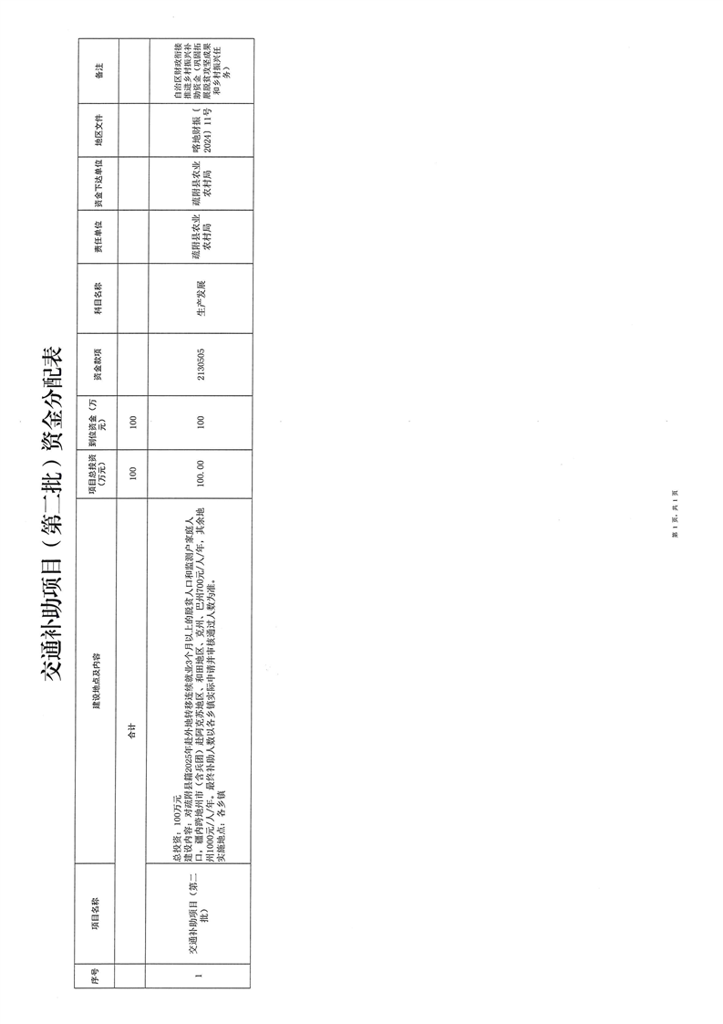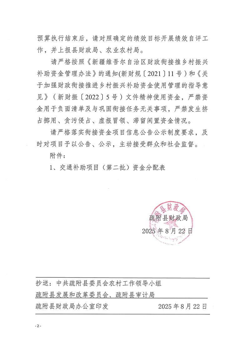 疏财振〔2025〕61号关于下达交通补助项目(第二批)资金的通知