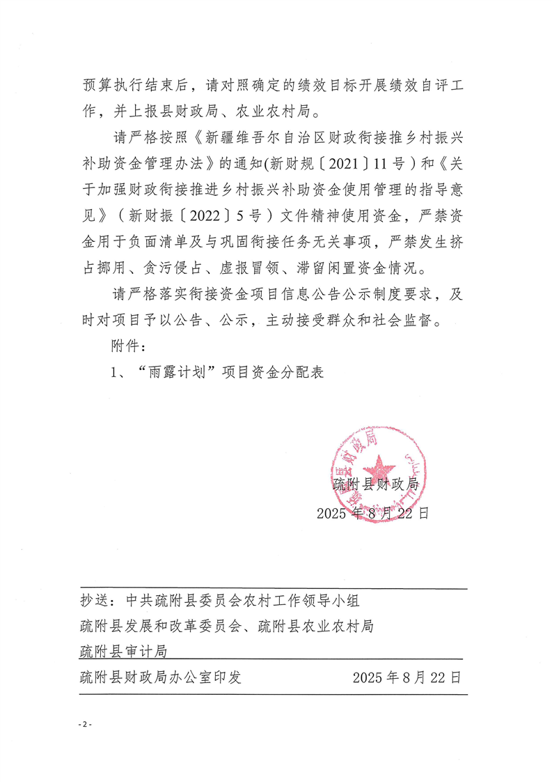 疏财振〔2025〕60号关于下达“雨露计划”项目资金的通知
