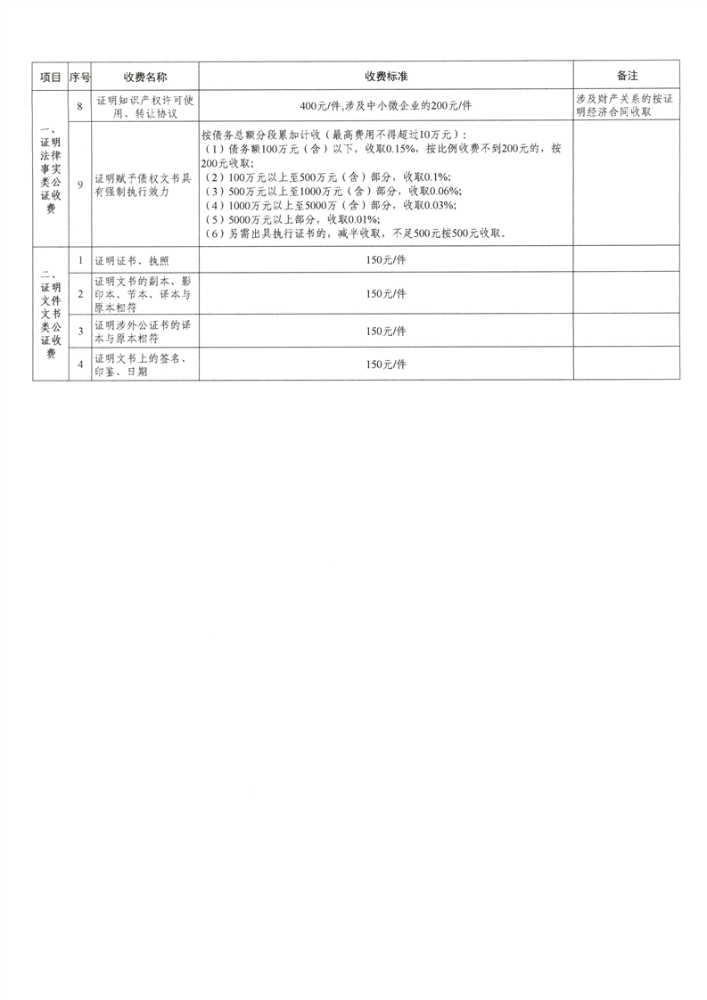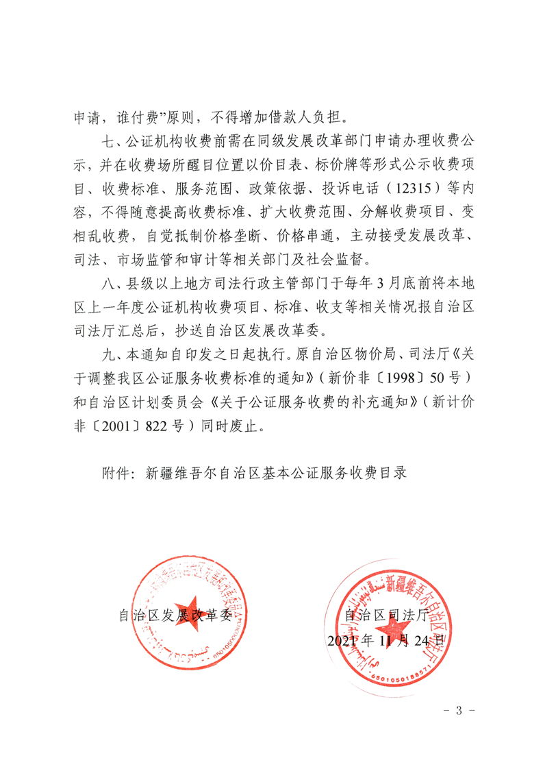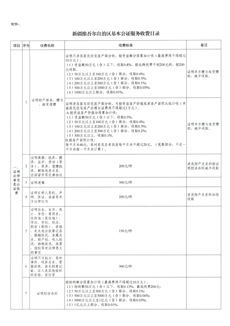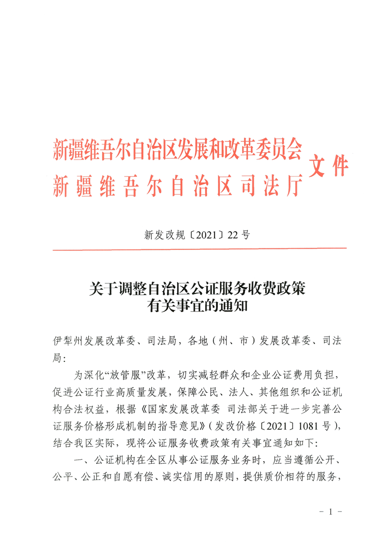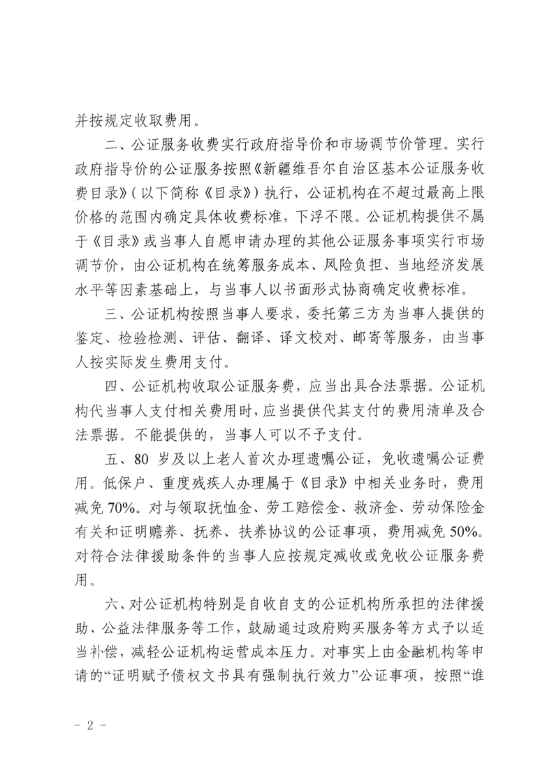 关于调整自治区公证服务收费政策有关事宜的通知