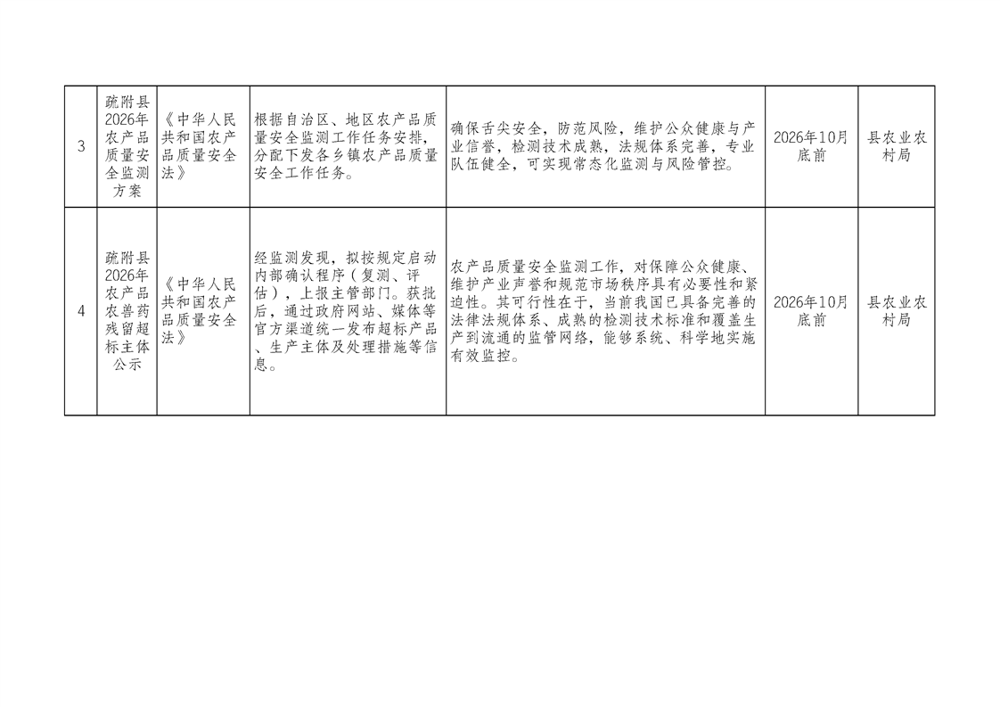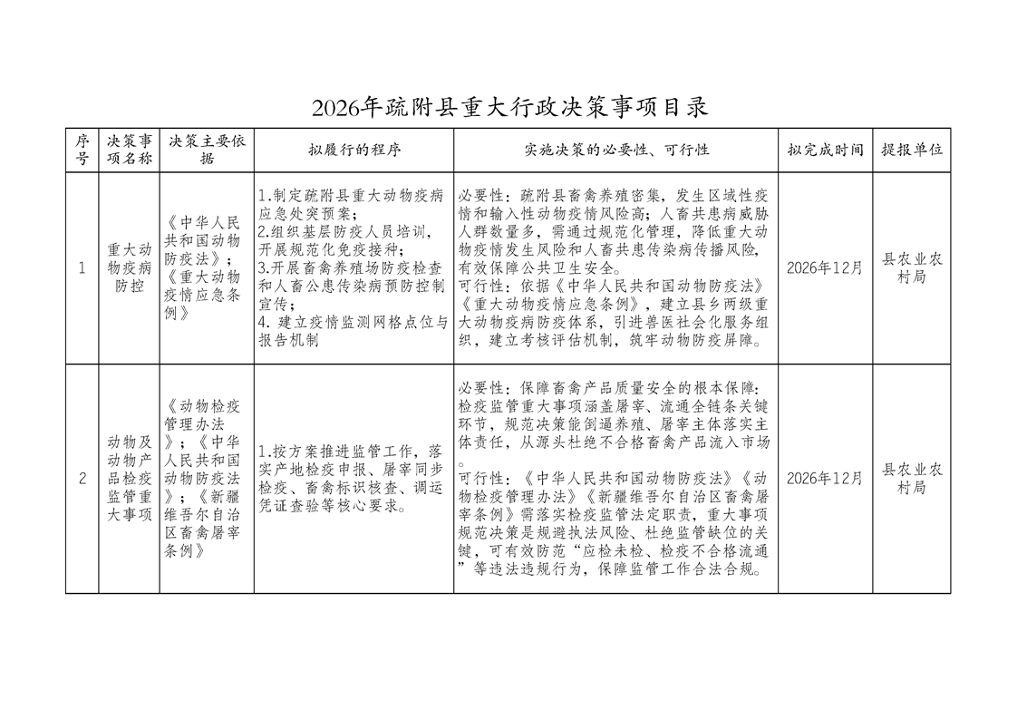2026年疏附县重大行政决策事项目录