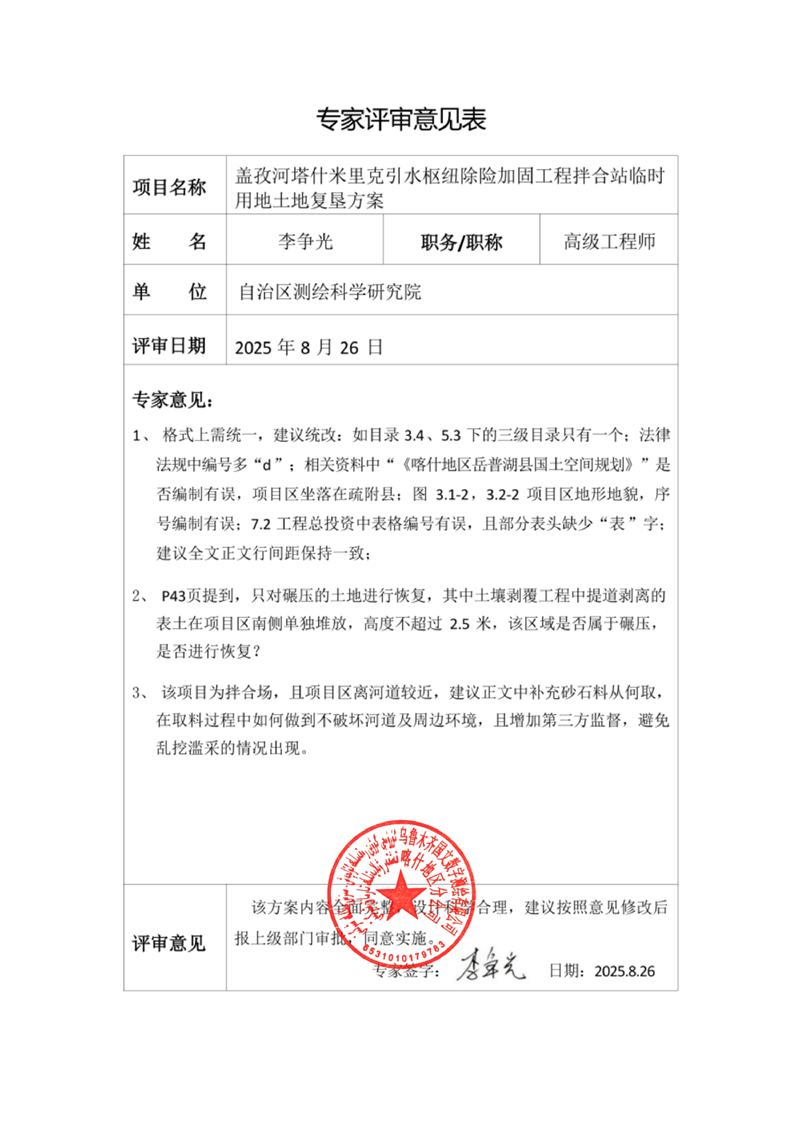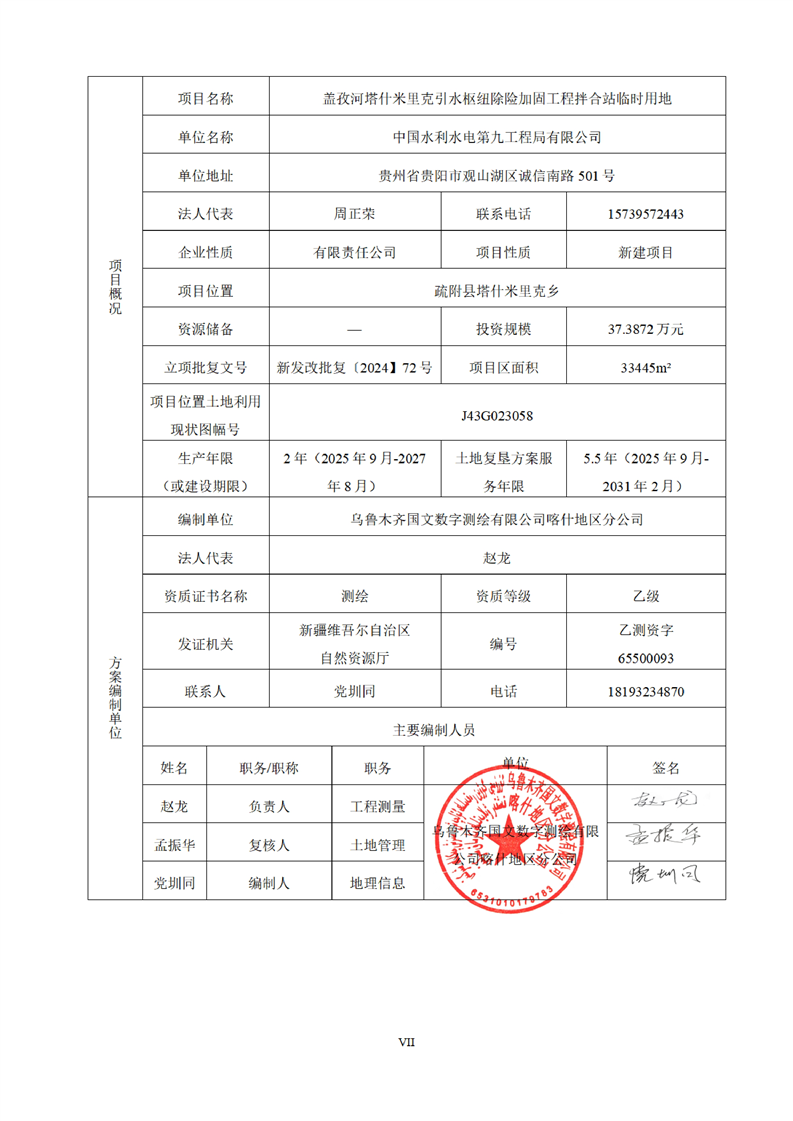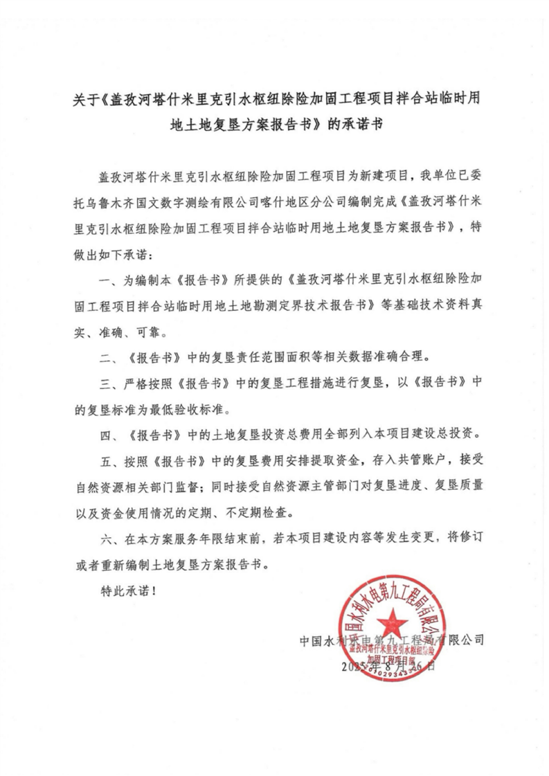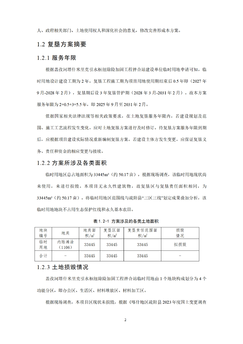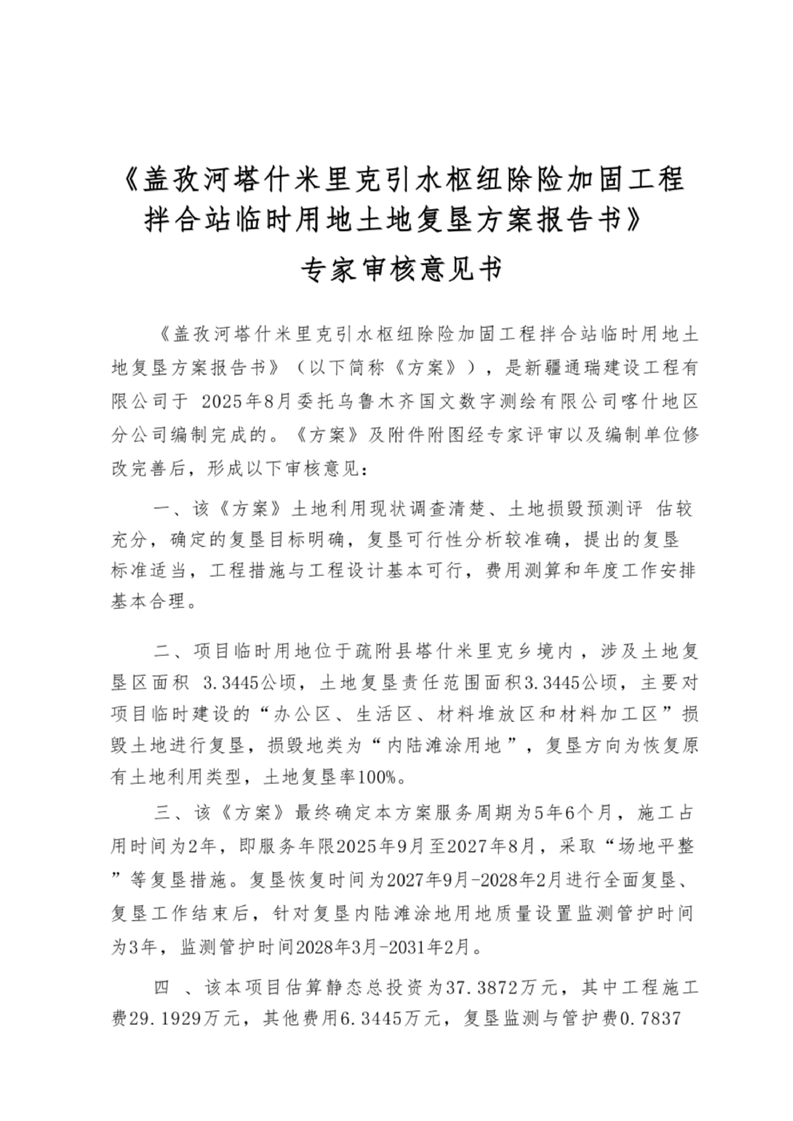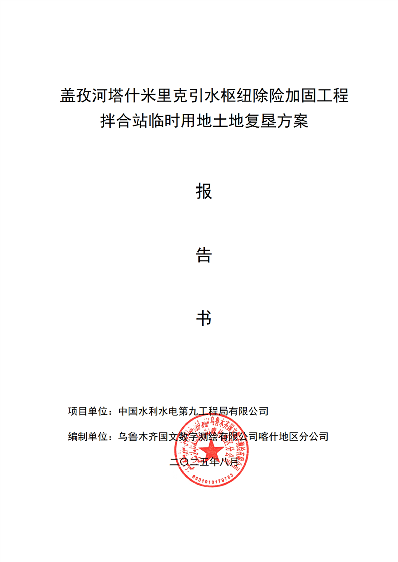 盖孜河塔什米里克引水枢纽除险加固工程拌合站临时用地土地复垦方案