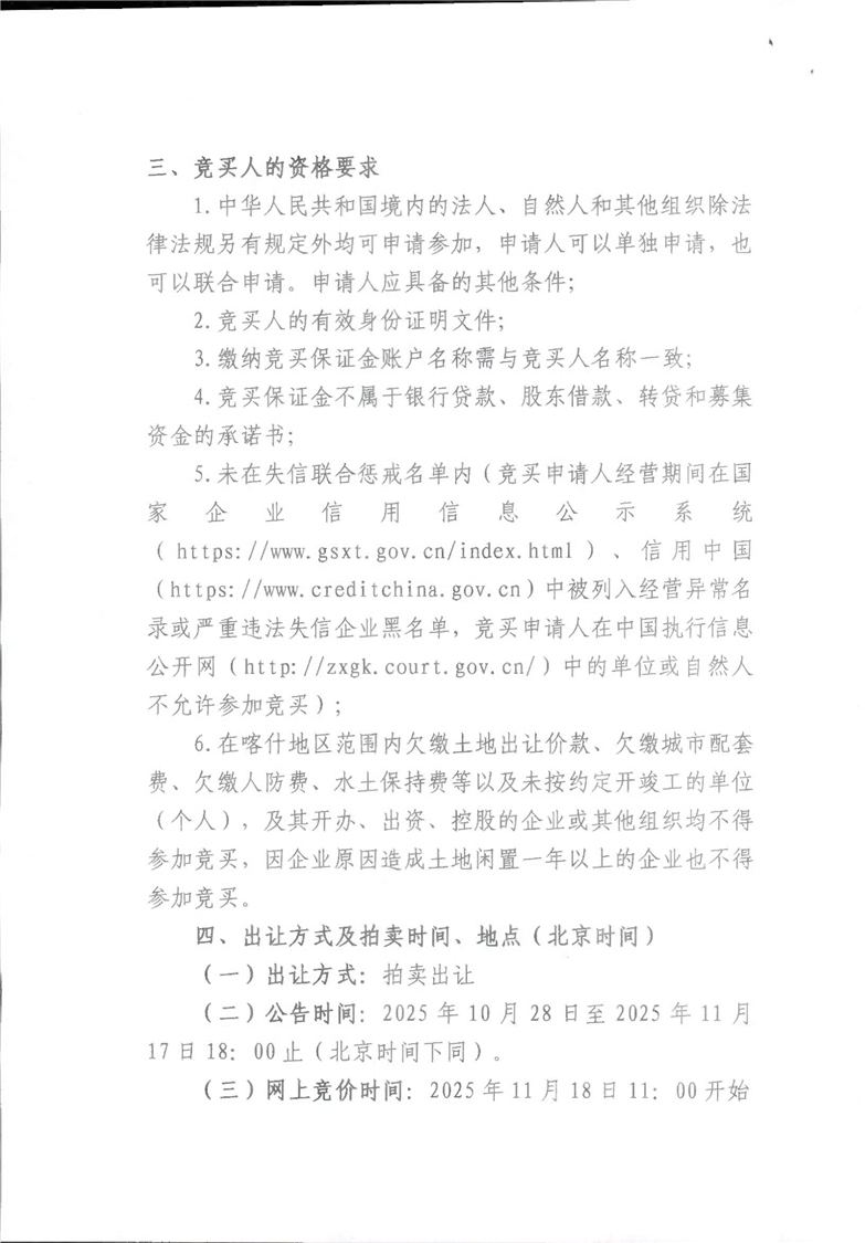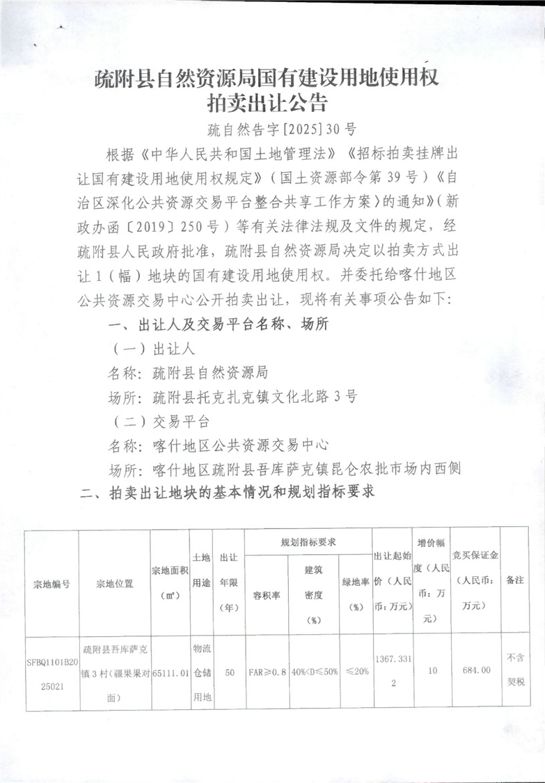 疏附县[2025]30号国有建设用地使用权拍卖出让公告