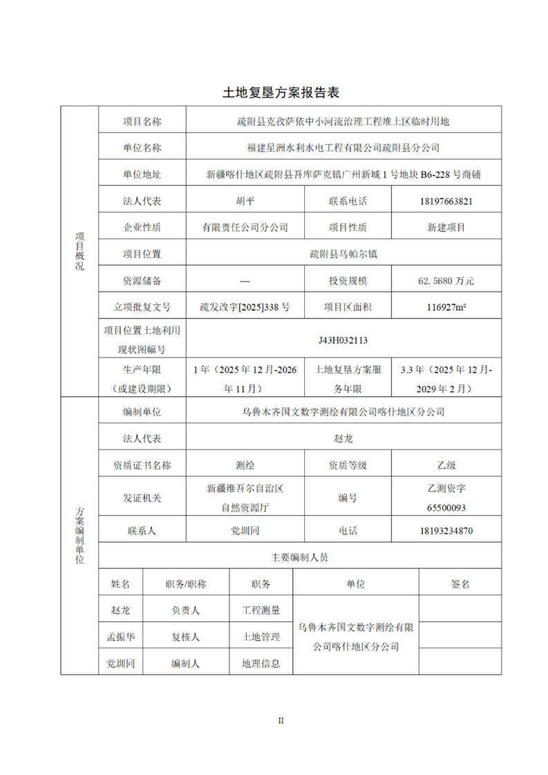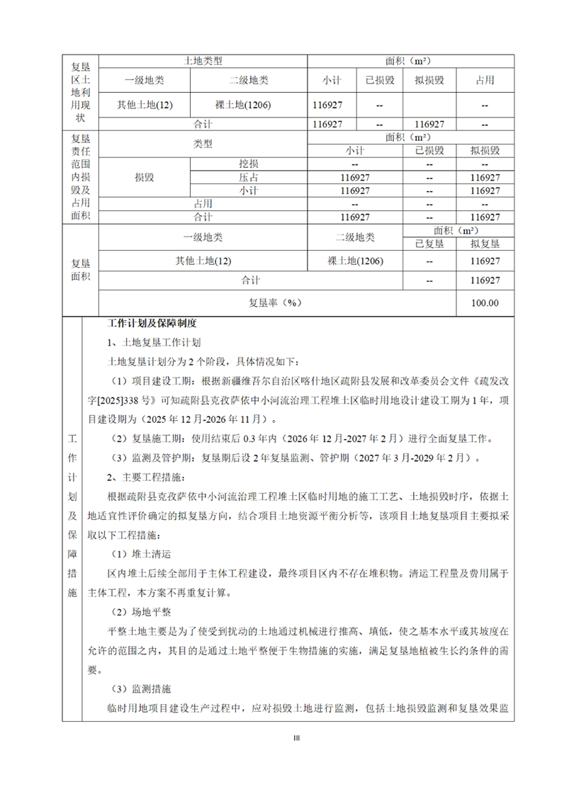 疏附县克孜萨依中小河流治理工程堆土区临时用地土地复垦方案2