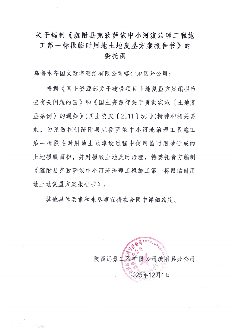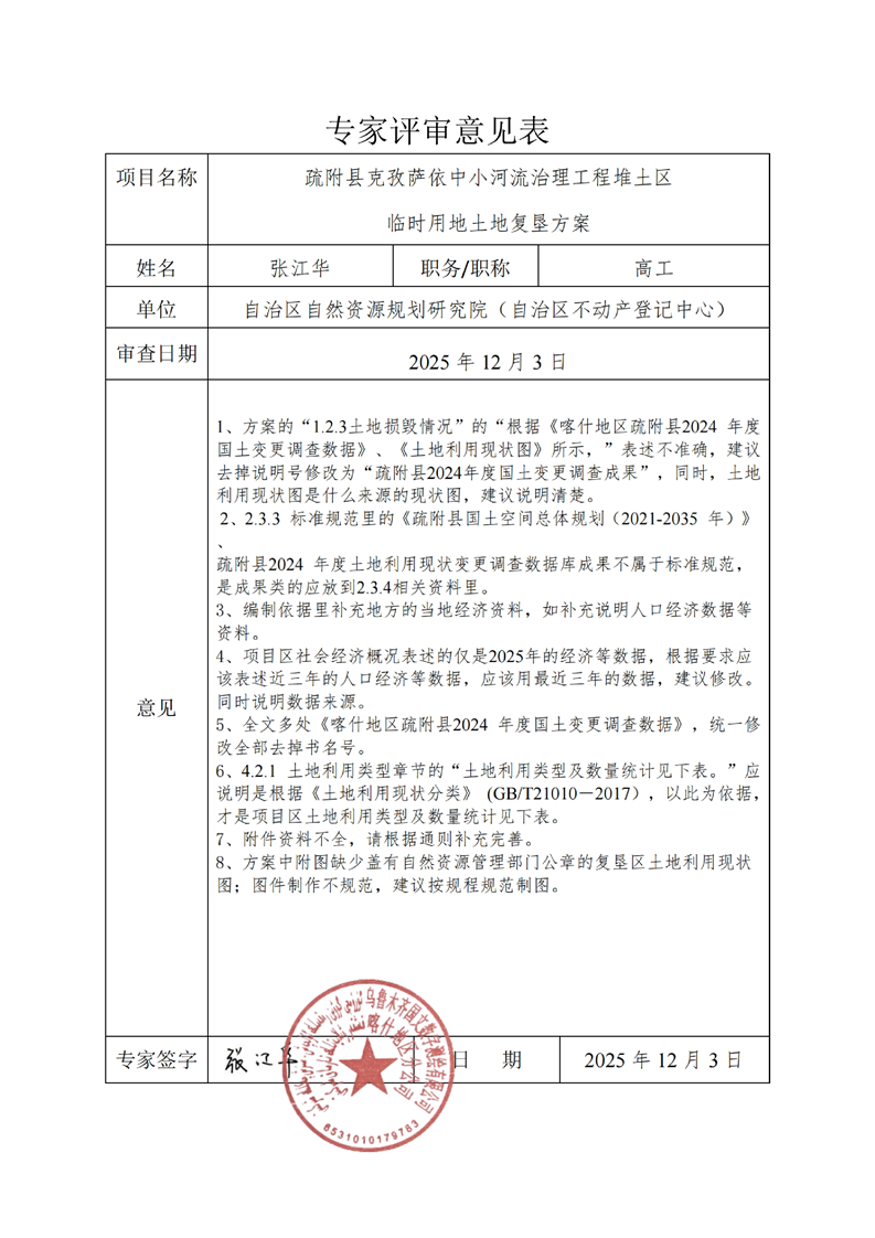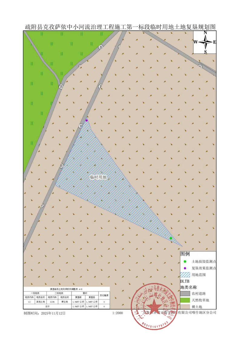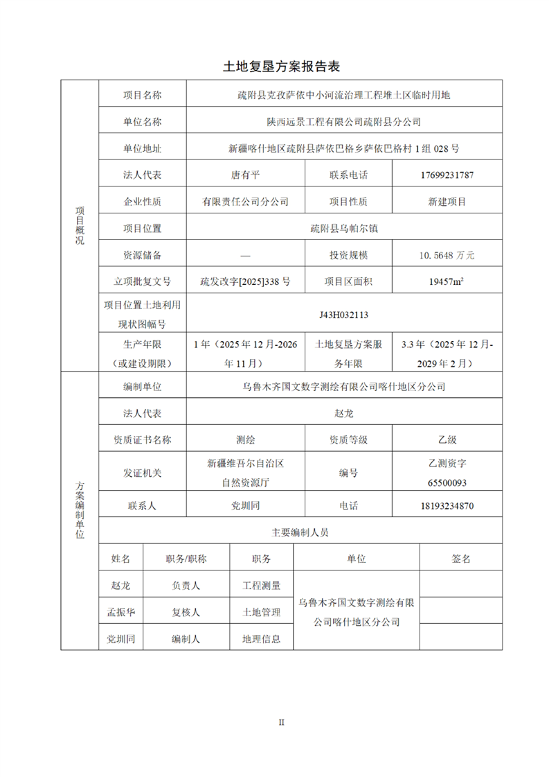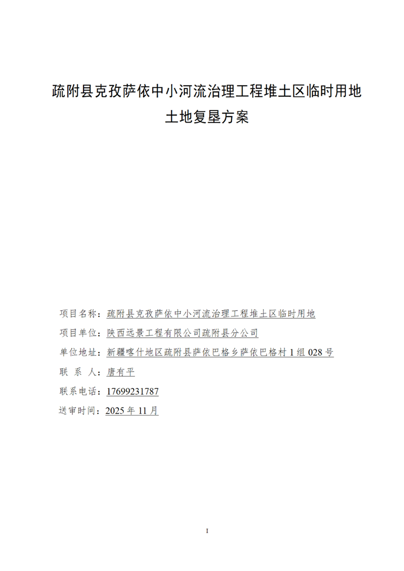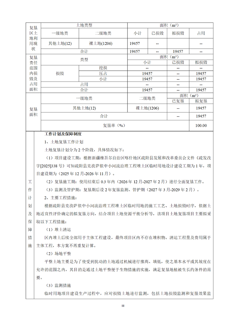疏附县克孜萨依中小河流治理工程堆土区临时用地土地复垦方案