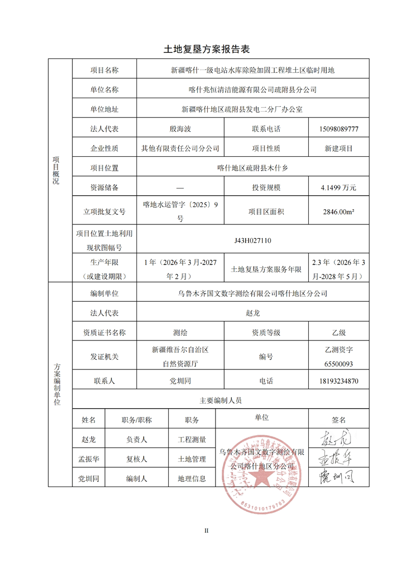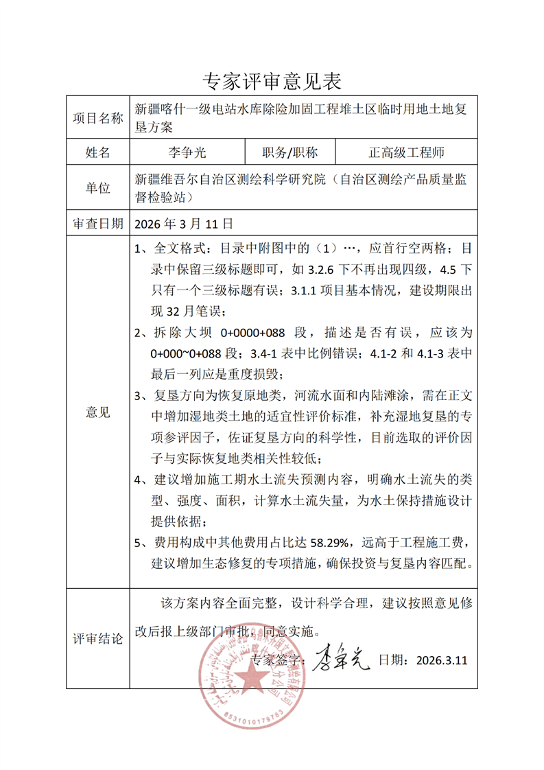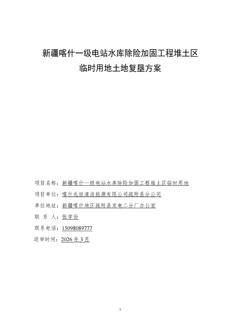 新疆喀什一级电站水库除险加固工程堆土区临时用地土地复垦方案