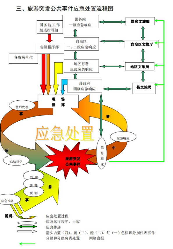 1.3县人民政府及有关部门在旅游突发事件发生后,要根据职责和规定的权限,启动相关应急处置规程,控制事态发展并向上级报告。